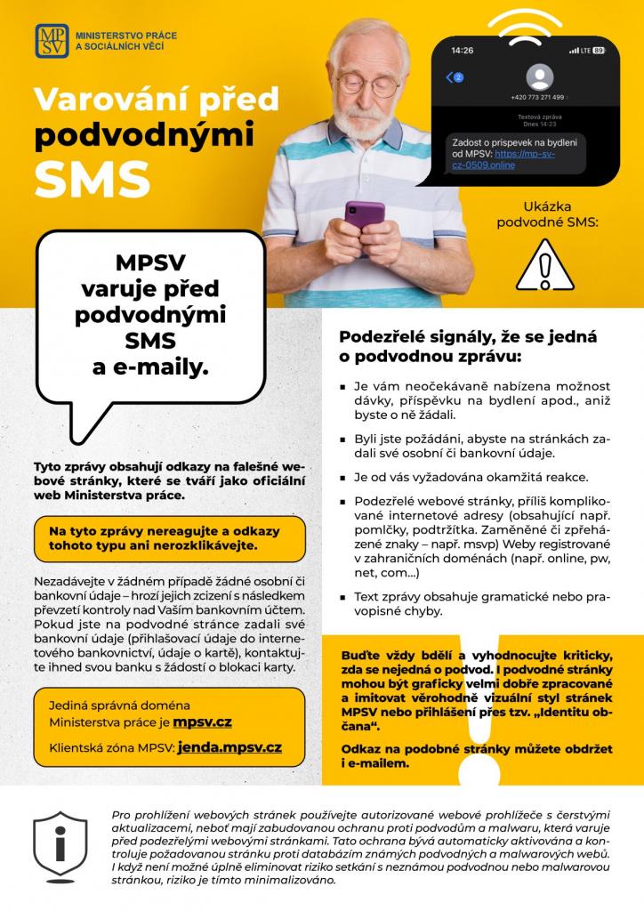 MPSV varuje před podvodnými SMS.