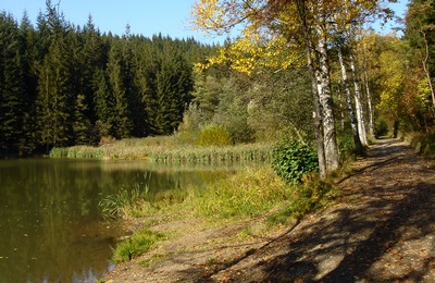 Krása potůčku, který se sbírá nahoře v kopcích, aby nás potěšil čistou zurčící vodou. Vlhké louky se sítinami, skřipinou lesní a pcháči. Vrchoviště s rašeliníkem. Vzácné druhy rostlin a živočichů. Voda, počátek života. Každým údolíčkem ztéká dolů do Karlovic menší či větší potůček – Podťaté, Tísňavy, Leskové, Miloňov, Pluskovec, Jezerné. To dostalo své jméno podle jezera, ve kterém bydlí drak. Kdo ví?
